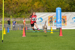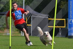 eine Sektion. Auch hier wird die Laufzeit gestoppt, als Fehler gelten das Auslassen von Slalomtoren, Hindernissen, das Reißen von Stangen und das vorprellen (der Hund ist auf der Hürden der zweiten